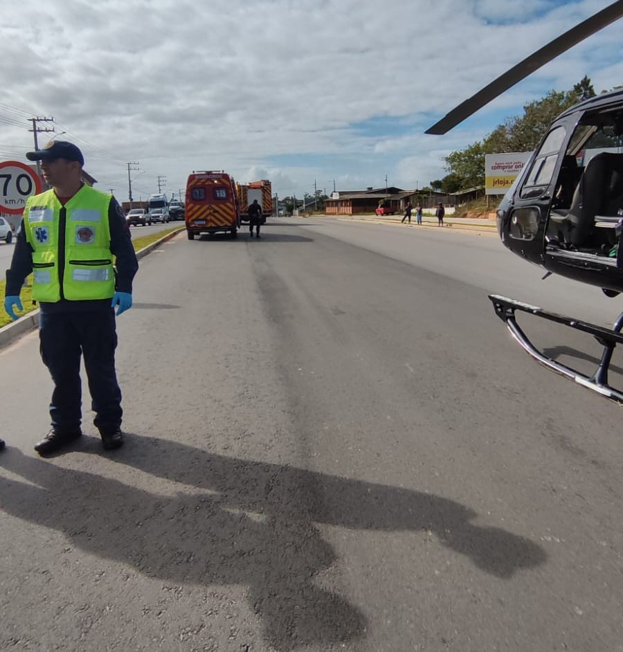 Após o atendimento emergencial, a vítima foi transportada com urgência ao Hospital São José de Criciúma, onde permanece internada sob cuidados intensivos.